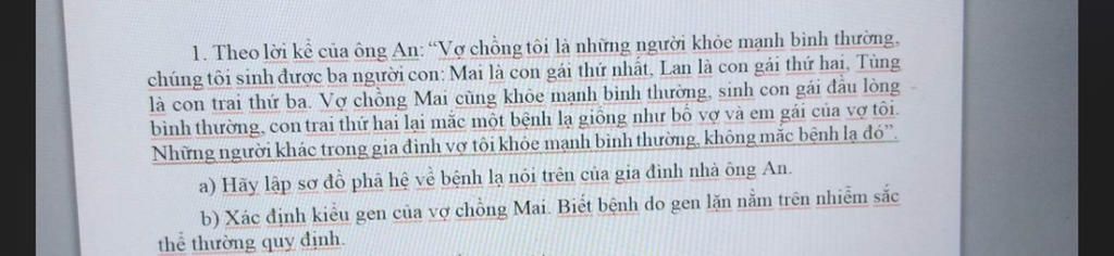 `-` Mai và chồng Mai không bị bệnh `( III.6 xxIII.7)` sinh ra con trai `IV.11` bị bệnh `->` Gen quy định bệnh là gen lặn.