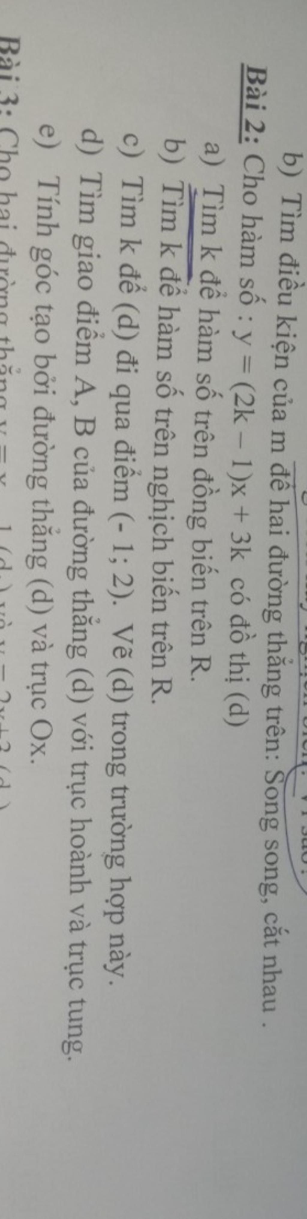 Bài 2: Cho hàm số : y = (2k − 1)x + 3k có đồ thị (d)