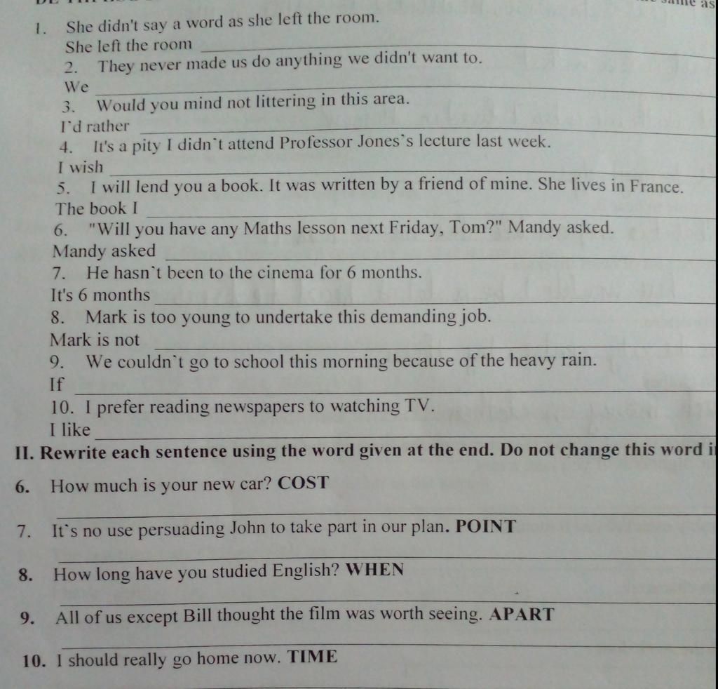 4. It's a pity I didn't attend Professor Jones's lecture last week.