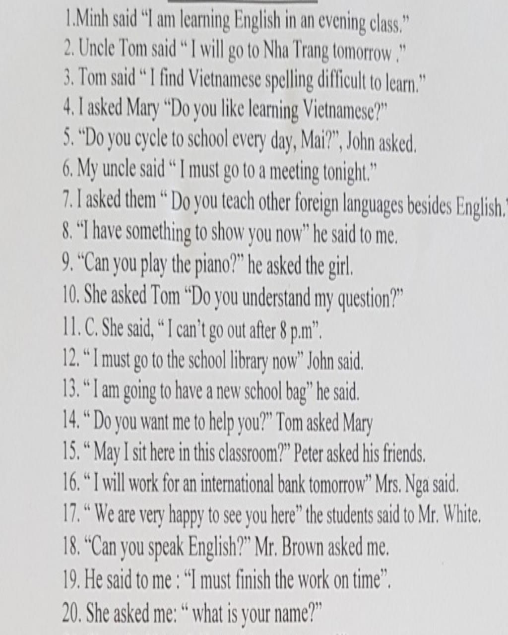 2. Uncle Tom said that he would go to Nha Trang the following day