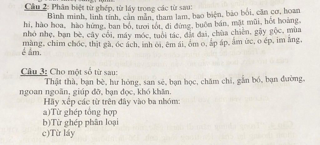 `a)` Từ ghép tổng hợp: bạn bè, hư hỏng, gắn bó, giúp đỡ, khó khăn.