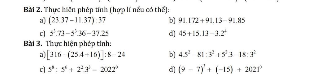 `c)5^3 . 73 - 5^3 . 36 - 37 . 25`