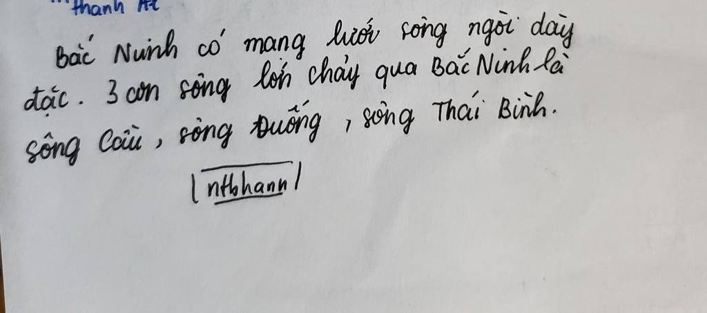 `3` con sông lớn chảy qua tỉnh Bắc Ninh là: