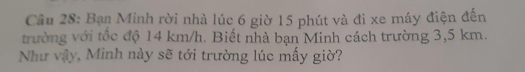 Thời gian để bạn Minh đi xe máy điện đến trường là: