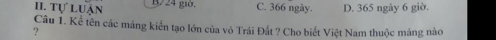 các mảng kiến tạo lớn của vỏ trái đất là: