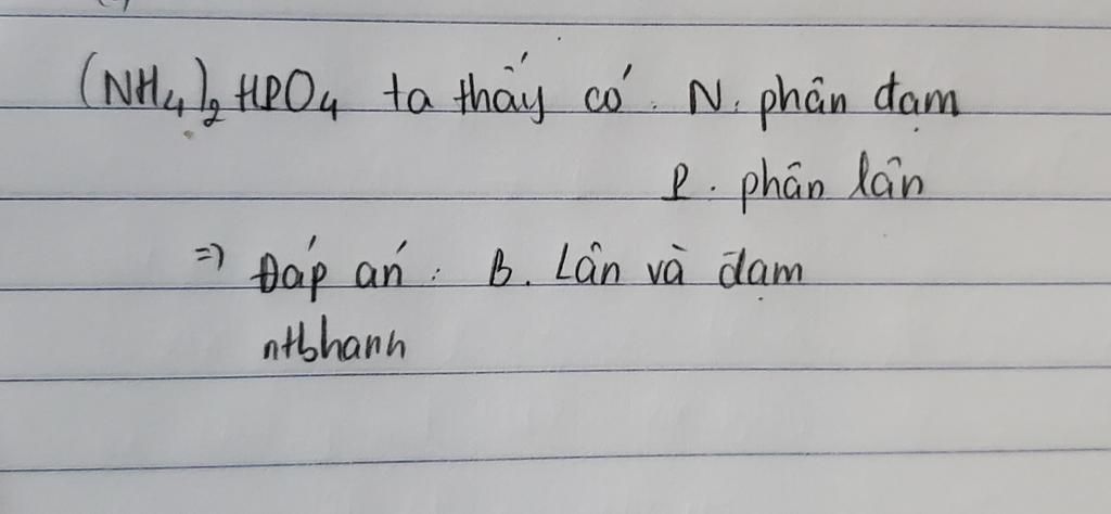 ⇒ Chọn `B` . Lân và đạm