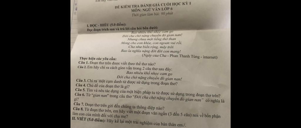ĐỀ KIỂM TRA ĐÁNH GIÁ CUỐI HỌC KỲ I