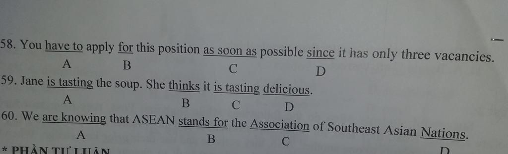 59>C chỉnh is tasting thành tasted vì chúng ta đang nêu í kiến về 1 sự vật hoặc sự việc gì đó