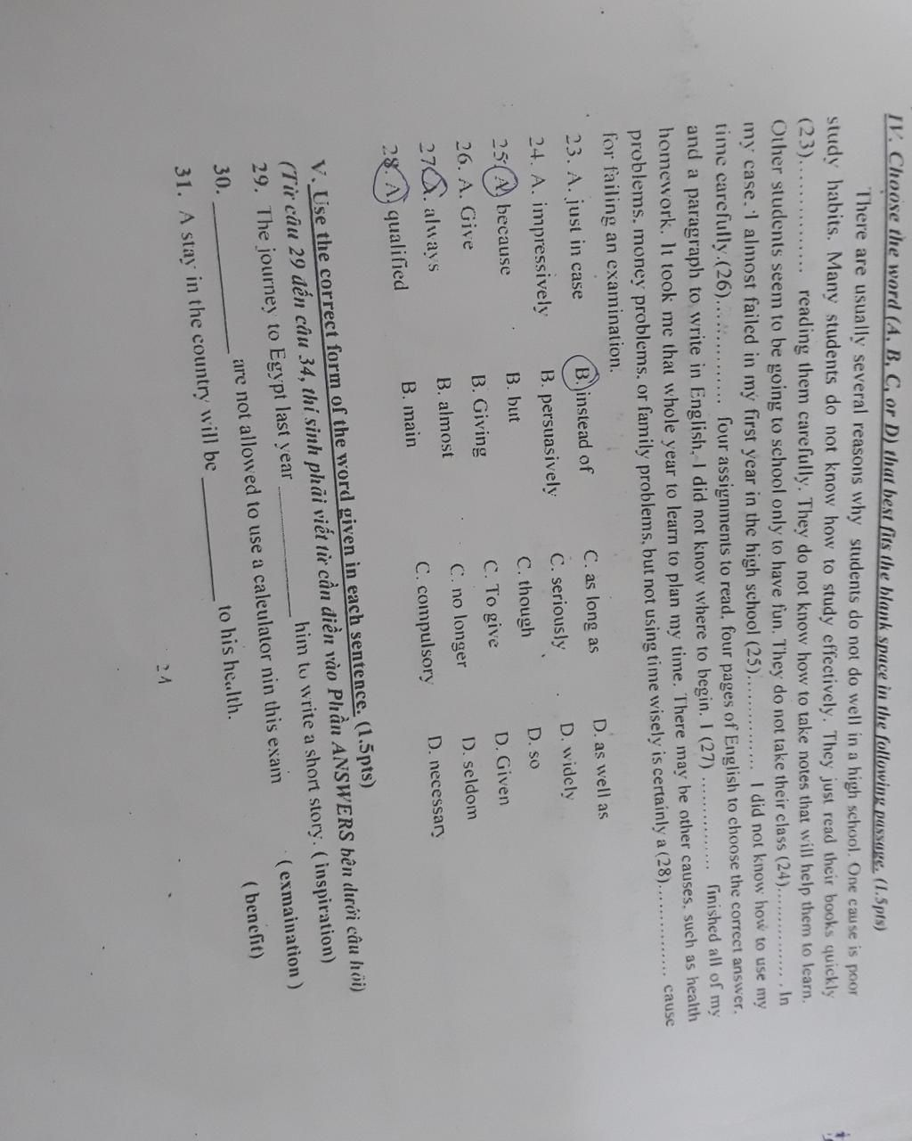 IV. Choose the word (A, B, C, or D) that best fits the blank space in the following passage. (1.5pts)
