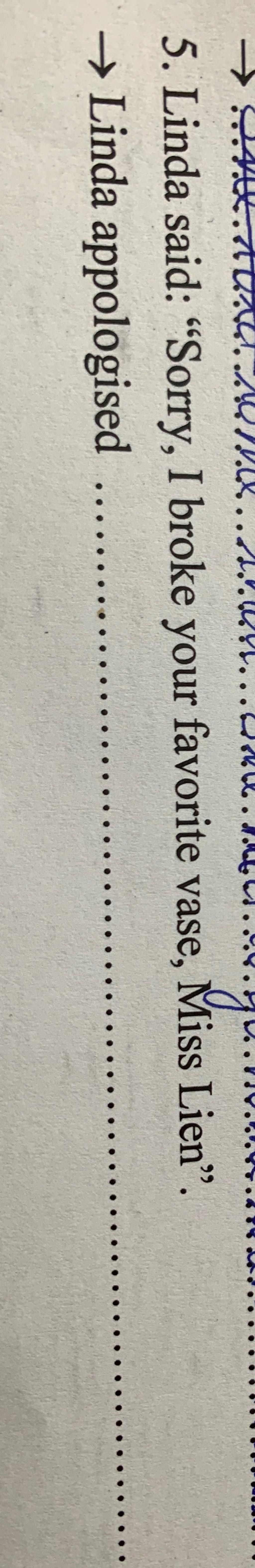 Linda appologised Miss Lien for having broken her favourite vase.