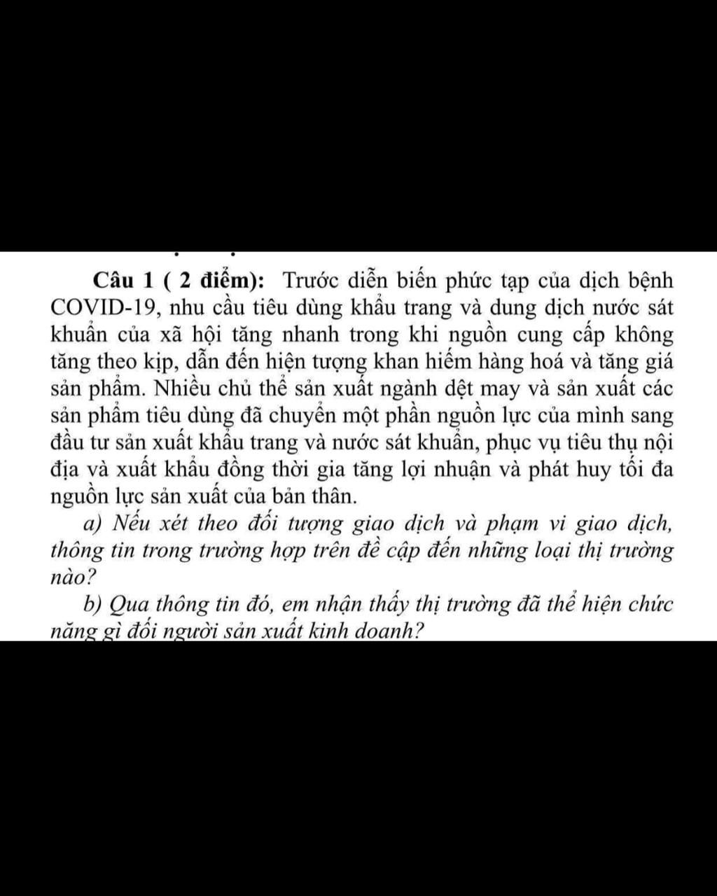 Câu 1 ( 2 điểm): Trước diễn biến phức tạp của dịch bệnh