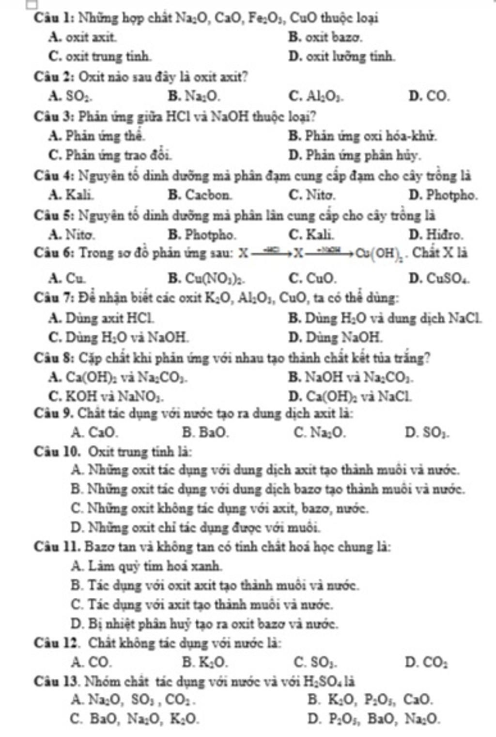 `-` Không có hiện tượng :`Al_2O_3,Cu(I)`.