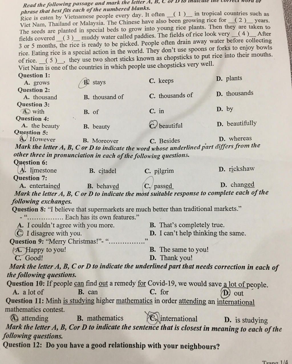 Read the following passage and mark the letter A, B, C or Do