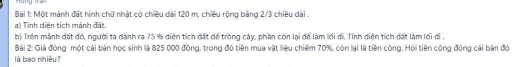 Diện tích phần đất làm lối đi là:
