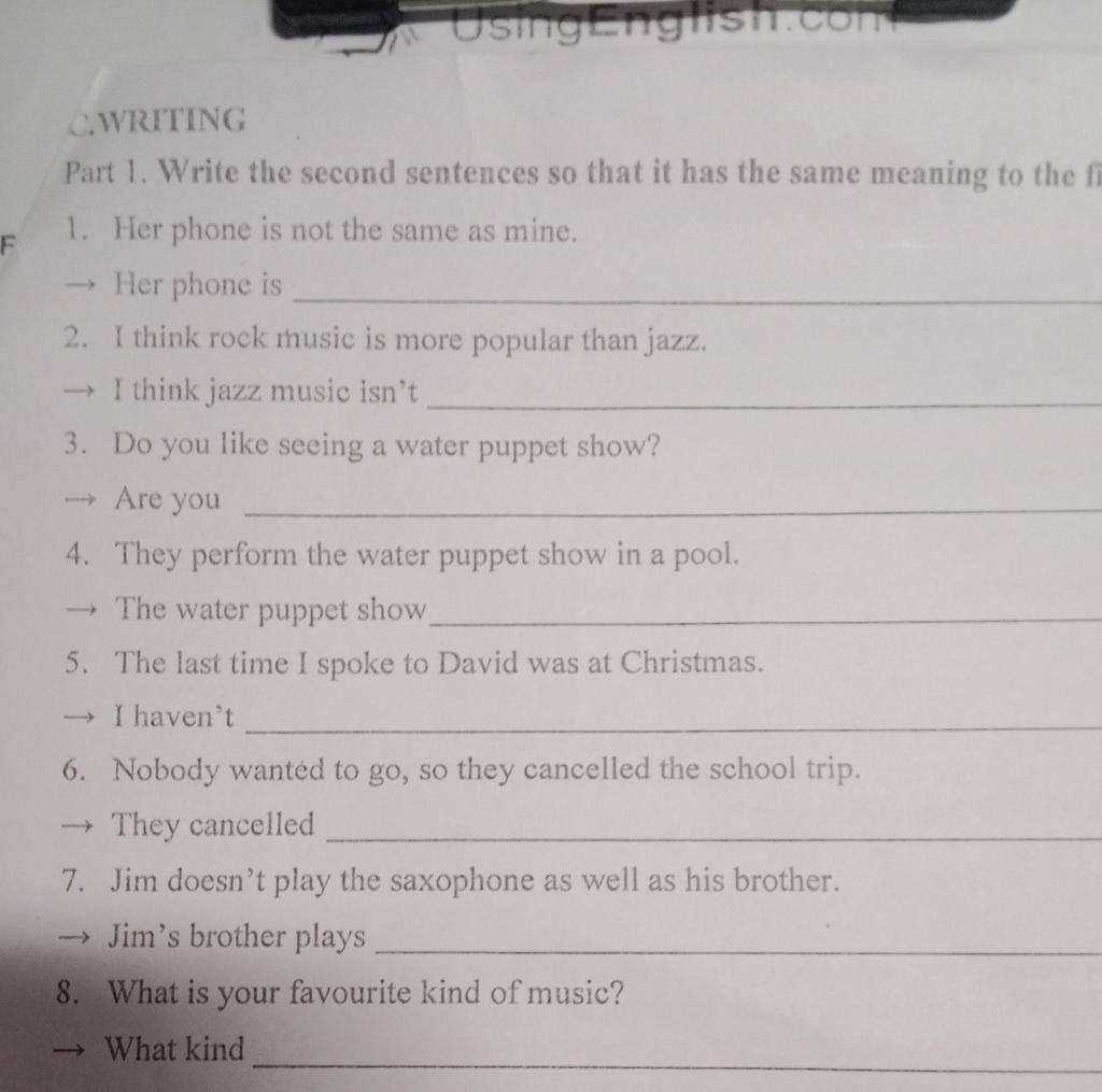1. Her phone is different from mine/my phone