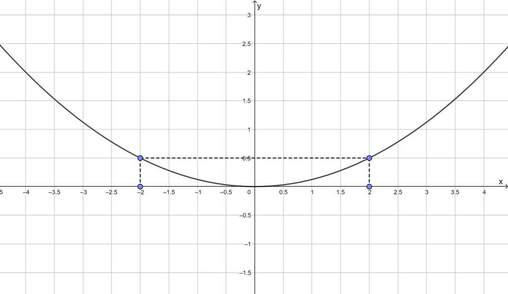 $\Rightarrow \dfrac{1}{2}=a.2^2\\ \Rightarrow a=\dfrac{1}{8}\\ \Rightarrow m=1, n=8\\ \Rightarrow m-n=-7.$