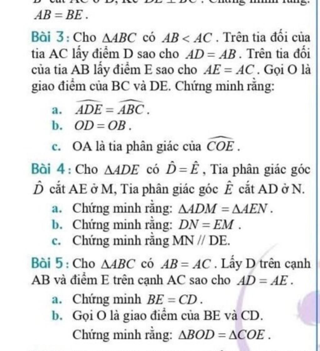 Bài 3: Cho A4BC có AB< AC . Trên tia đối của