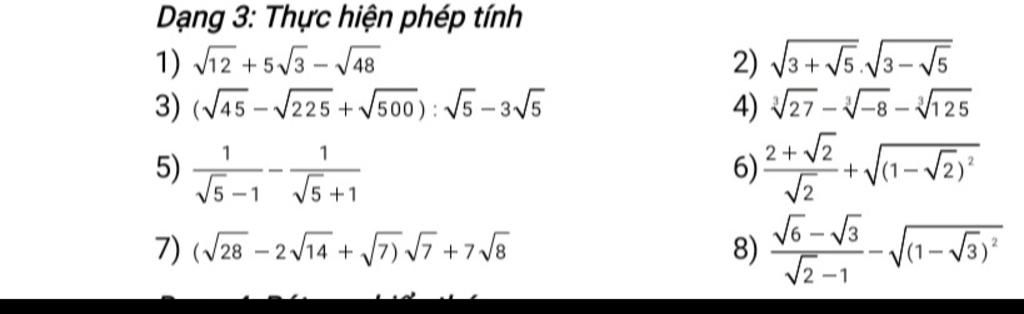 3)\left( {\sqrt {45} - \sqrt {225} + \sqrt {500} } \right):\sqrt 5 - 3\sqrt 5 \\