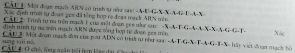Vậy trình tự nu của gen đã tổng hợp nên $mARN$ là