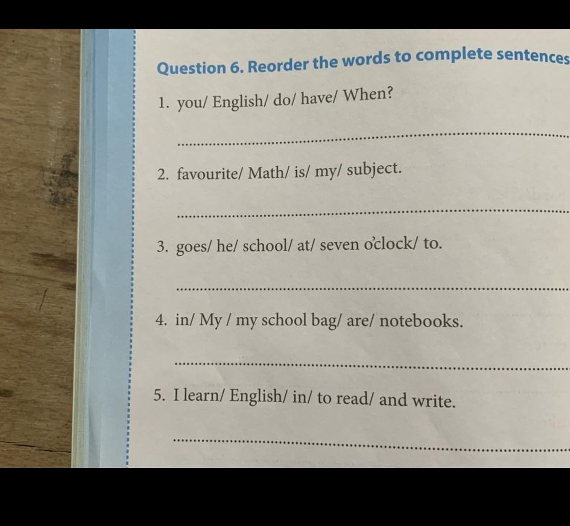 1. when do you have english? ( khi nào bạn học tiếng anh )