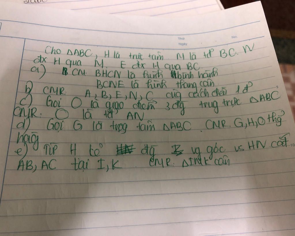 d) Gọi G là trọng tâm NABC. CMR GH, thy