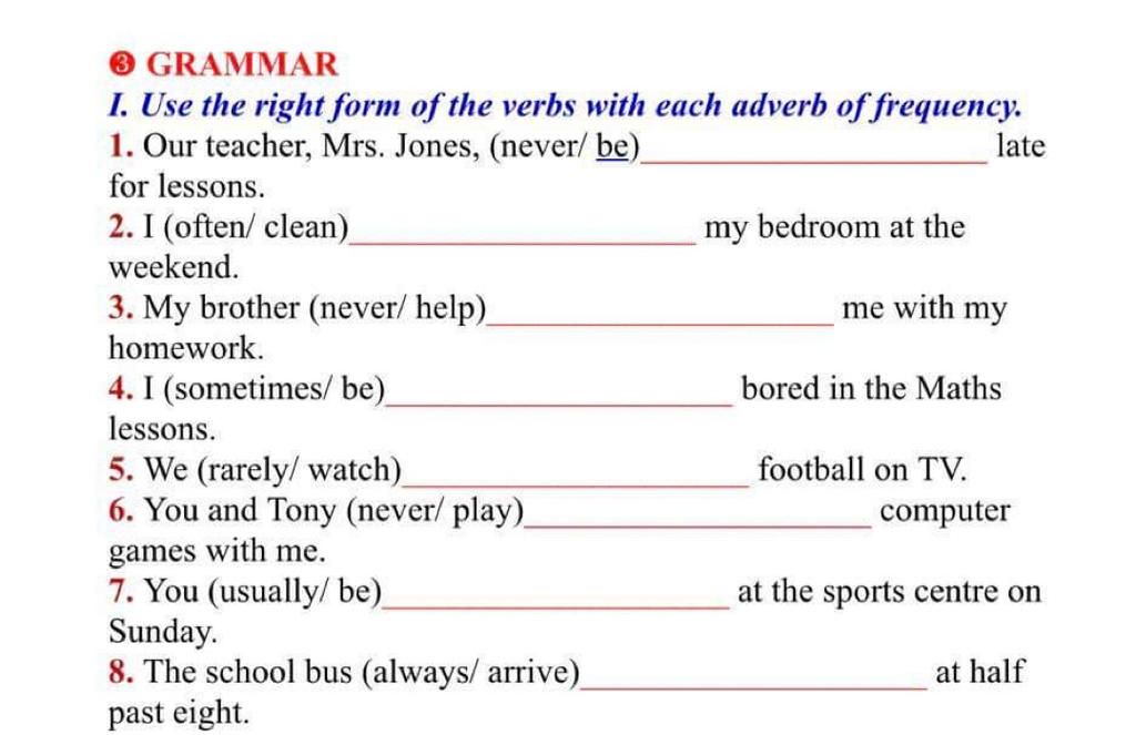 1 is never⇒vì never HTD , be HTD là is/am/are , mrs.jones =he +is +never