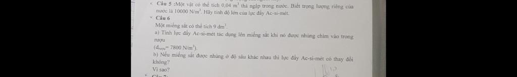 a) Tỉnh lực đẩy Ác-số thiết tác dụng lên miếng sắt khi nó được nhưng chìm vào trong