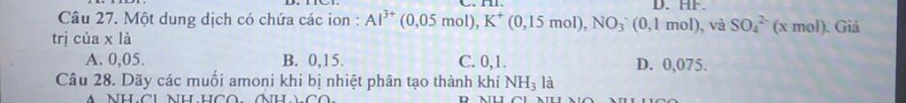 \Leftrightarrow 3 \times 0,05 + 0,15 = 0,1 + 2x \Rightarrow x = 0,1