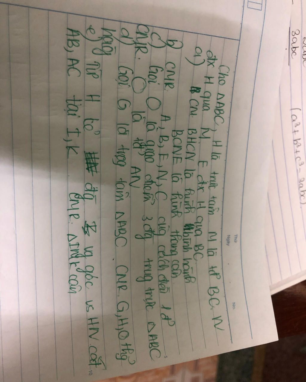 d) Gọi G là trọng tâm NABC CMR G,H,O thy