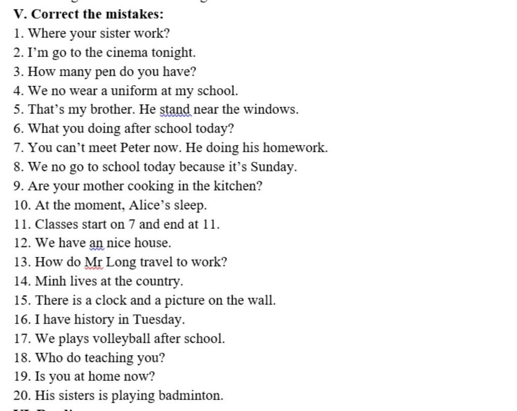 V. Correct the mistakes: