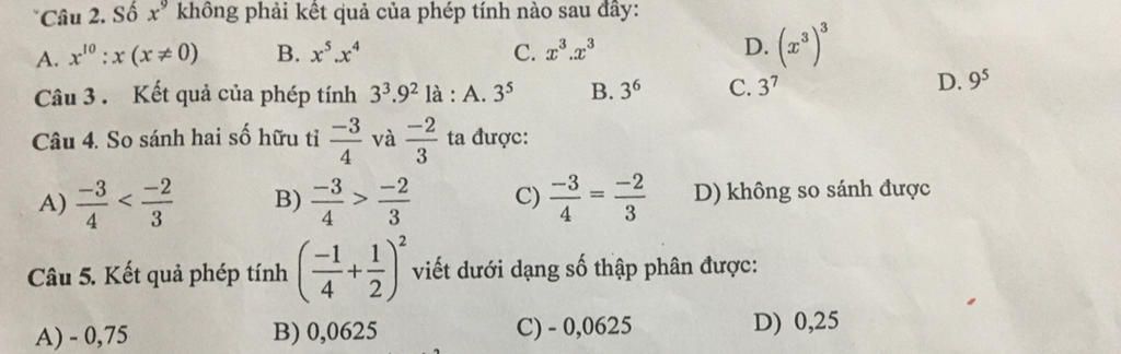`3^{3}.9^{2}=3^{2}.(3^{2})^{2}=3^{2}.3^{4}=3^{2+4}=3^{6}`