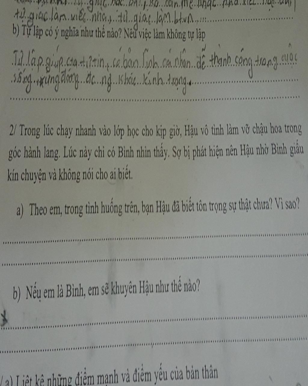 a,tình huống trên bạn hậu chx biết tôn trọng sụ thật.Vì khi làm nhu vậy bạn sẽ thành nguòi không trung thục và nếu khi cô giáo biết thì cô sẽ còn phạt bạn.