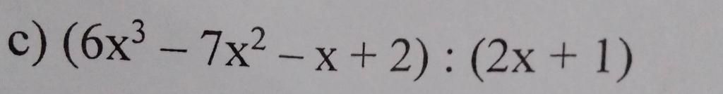 ` (6x^3 - 7x^2 - x + 2): (2x+1) = ( 3x^2 - 5x+ 2 )`