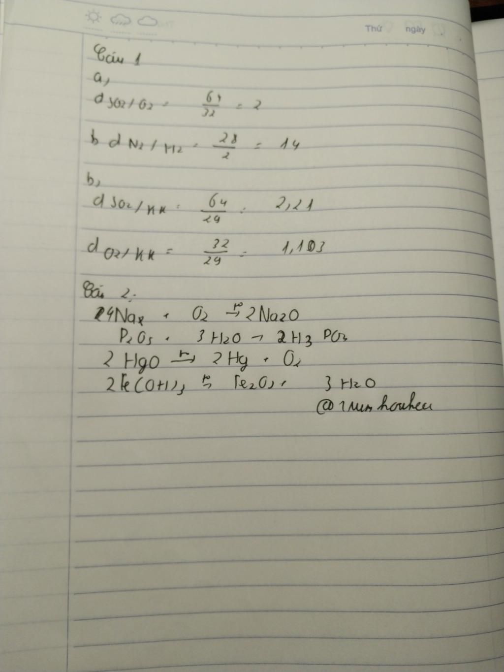 $d_{SO_2}/{O_2}$`=64/32=2`