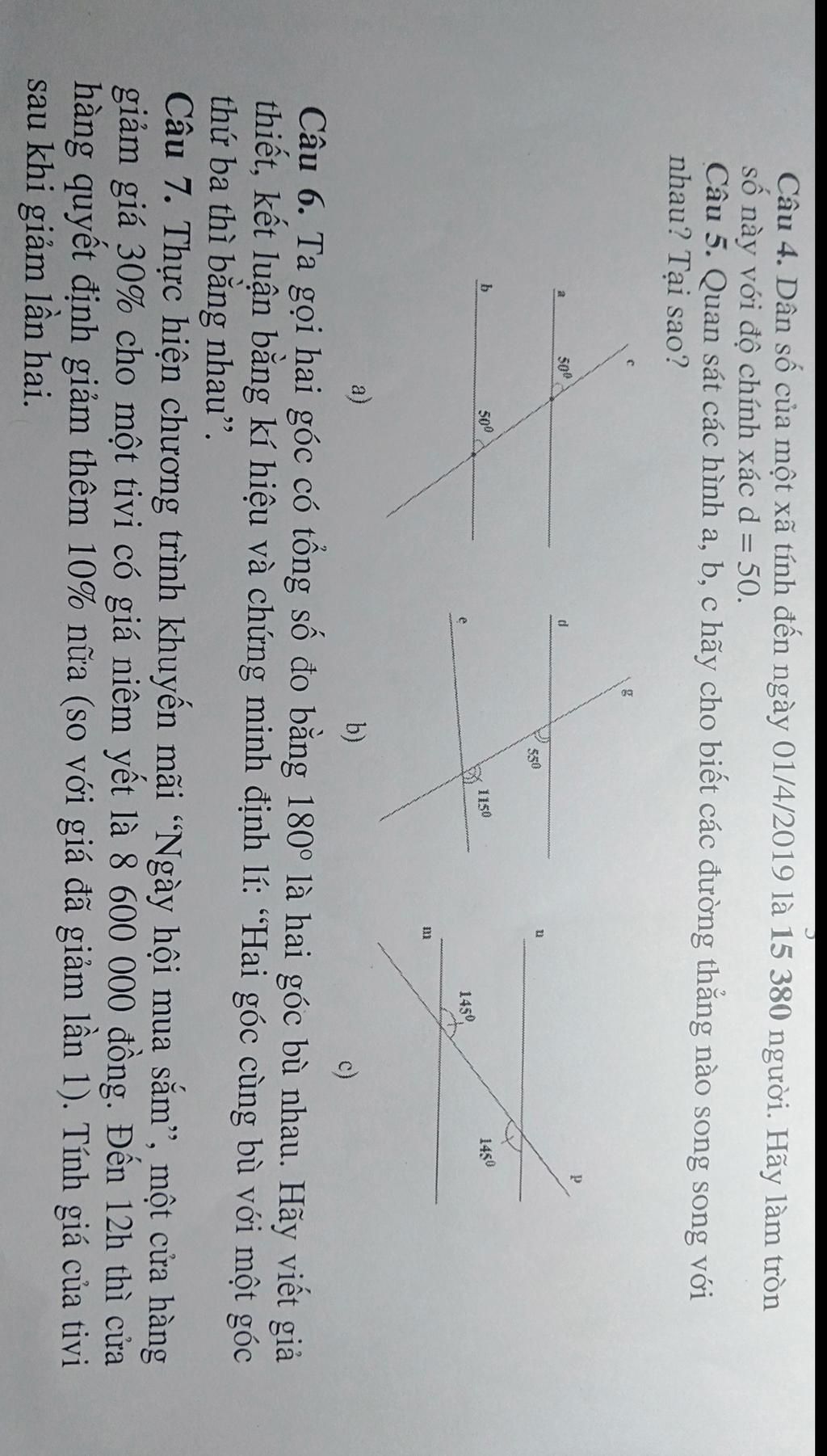 Câu 4. Dân số của một xã tính đến ngày 01/4/2019 là 15 380 người. Hãy làm tròn
