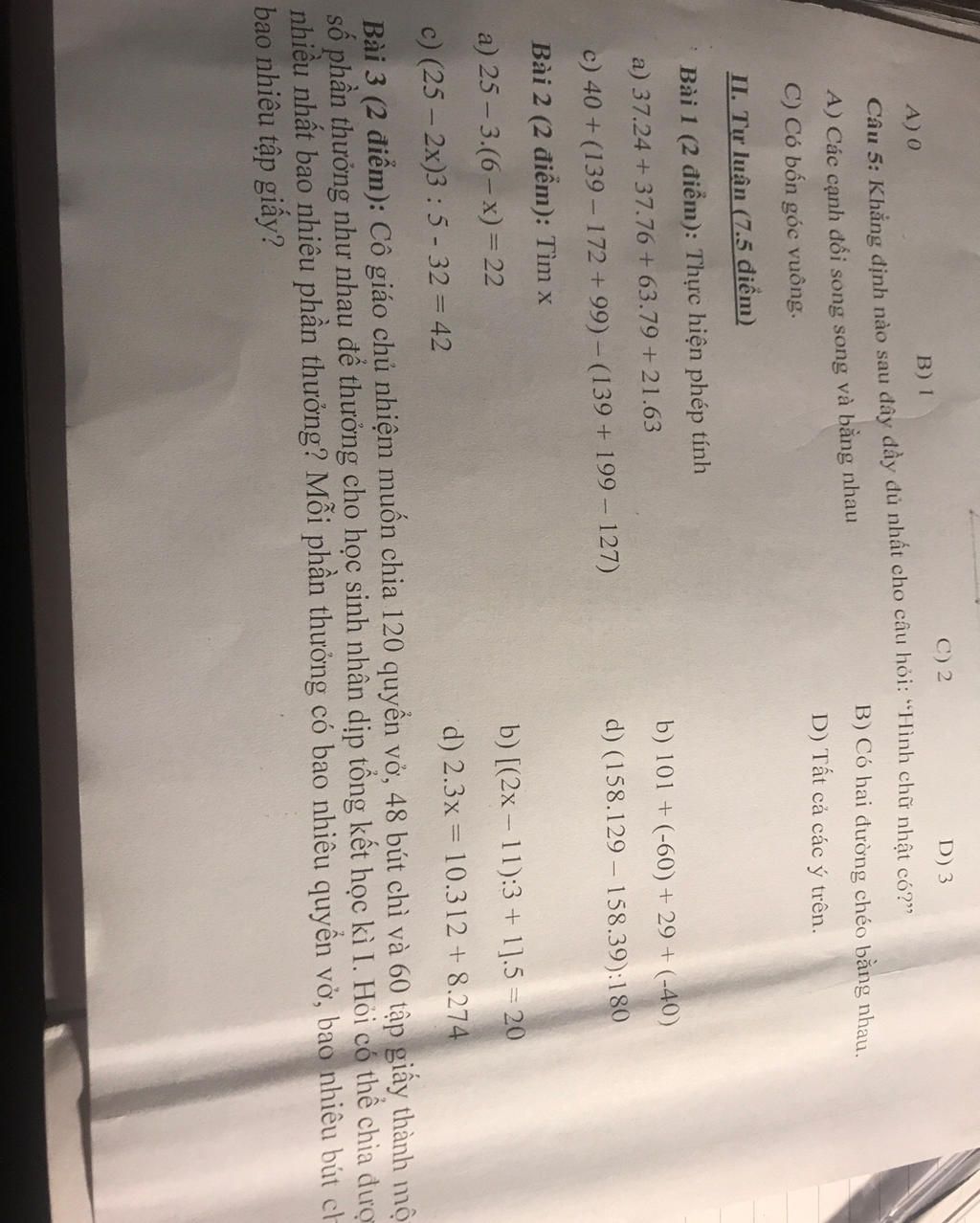 II. Tự luận (7.5 điểm)