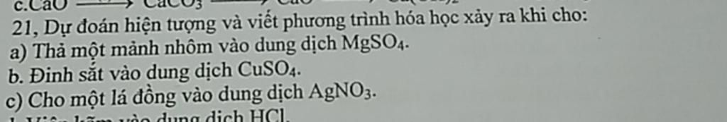 `b.` Đinh sắt bị hòa tan, dung dịch bị nhạt màu, xuất hiện lớp kim loại màu đỏ bán vào đinh sắt