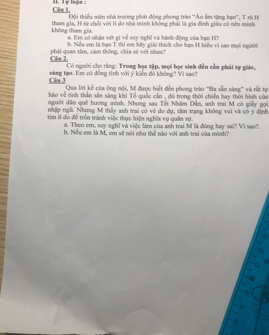 A. Theo em suy nghĩ việc làm của anh trai M là sai. Vì tổ quốc gọi chúng ta phải sẵn sàng đi nhập ngũ không do dự gì thêm