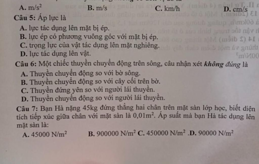 Áp suất bạn Hà tác dụng lên mặt sàn là: