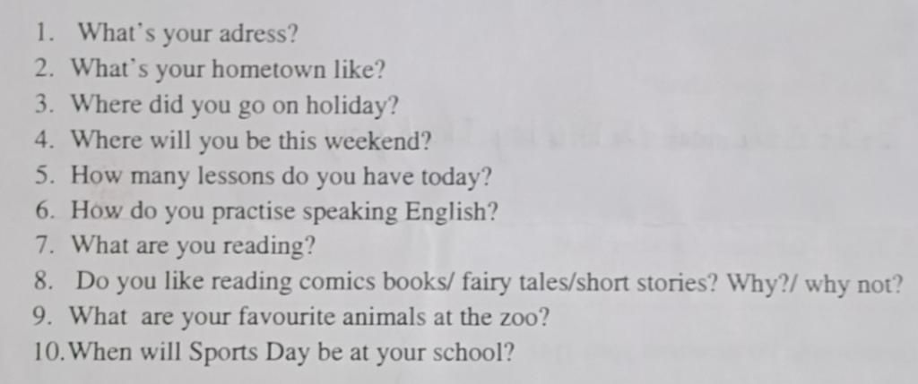 `5.` I have 5 lessons today: Science, English, Maths, Music, Art