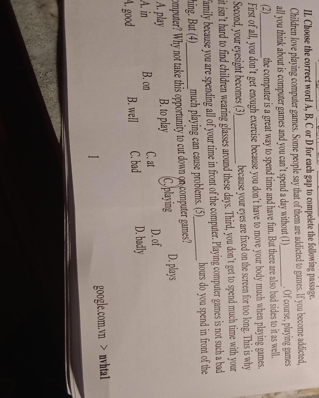 II. Choose the correct word A, B, C or D for each gap to compelete the following passage.
