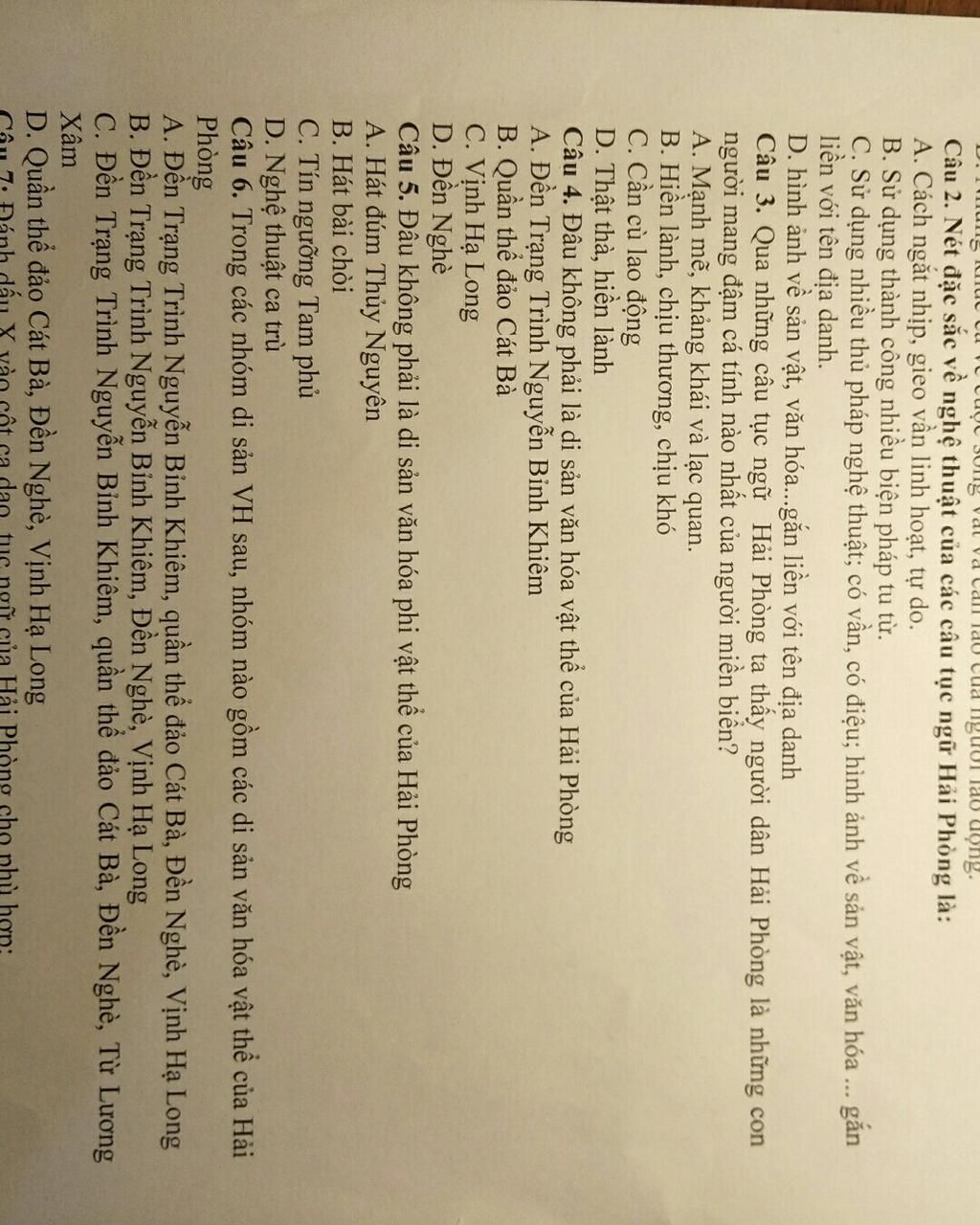 Đâu ko phải là nội dung chính của ca dao hải phòng