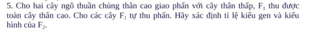 Đem lai cây thân cao thuần chủng với cây thân thấp thuần chủng thu được $F_1$ toàn thân cao