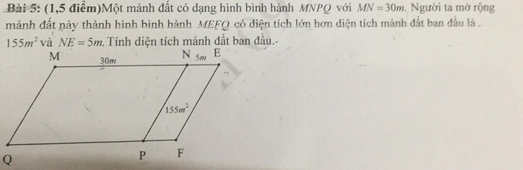 Phần đất mở roong có diện tích 155 m2 chính là hình bình hành MEFP