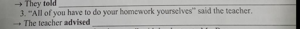 - Tạm dịch : Giáo viên khuyên tất cả chúng tôi tự làm bài tập về nhà của mình.