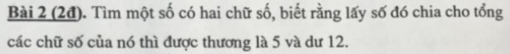 ab : (a + b) = 5 dư 12