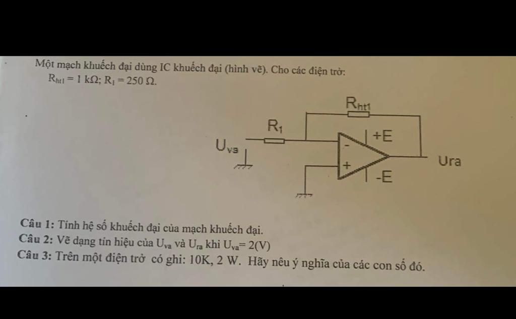 Một mạch khuếch đại dùng IC khuếch đại (hình vẽ). Cho các điện trở: