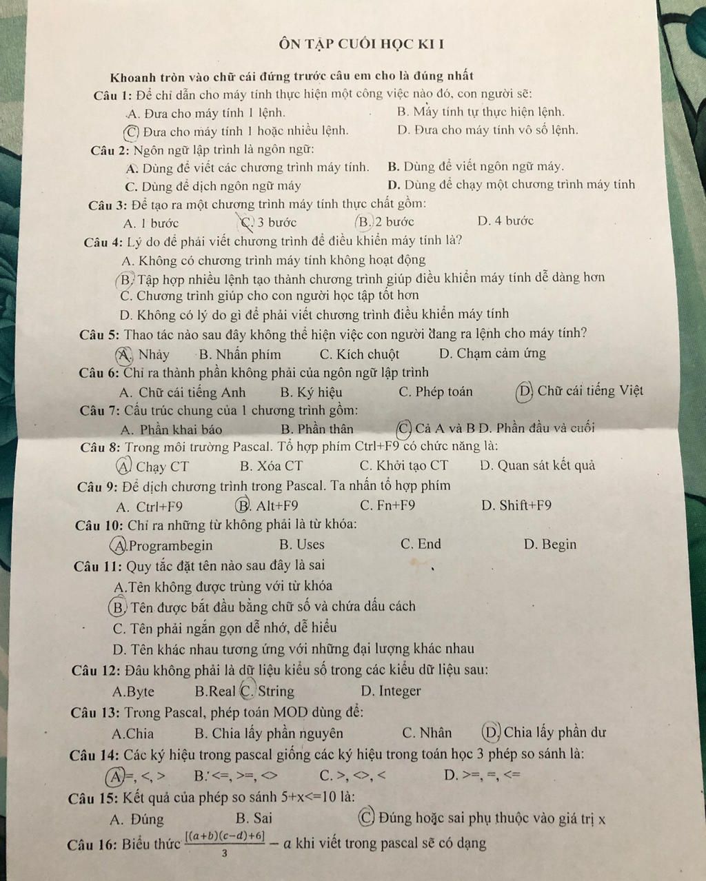 ÔN TẬP CUỐI HỌC KHI