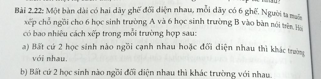 Bài 2.22: Một bàn dài có hai dãy ghế đối diện nhau, mỗi dãy có 6 ghế. Người ta muốn