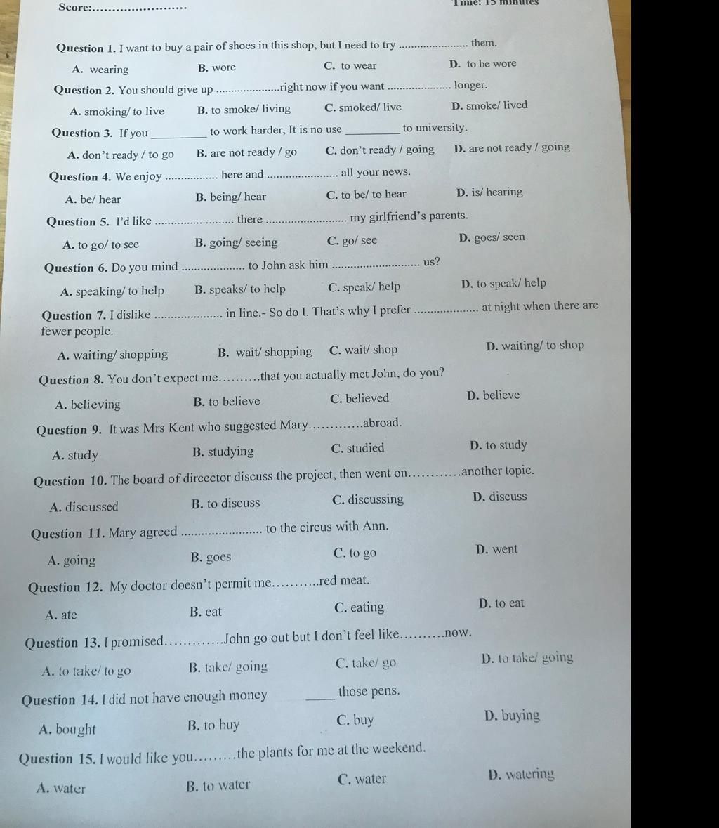 Question 1. I want to buy a pair of shoes in this shop, but I need to try